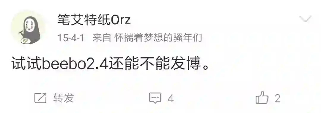 iBeebo以微博尾巴功能见长。没想到吧?这个现在只有微博会员才能用的功能,早在几年前就有了。当时带“怀揣着梦想的骚年们”尾巴的微博,都是通过iBeebo发出的。