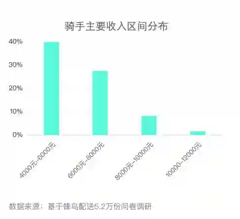 据《报告》统计,蜂鸟骑手收入主要集中在4000—8000元(包含兼职与专职骑手),超过了2017年全国城镇私营单位就业人员月均薪资3813.4元。在河南,做骑手的工资甚至比2017年当地城镇私营单位就业人员的工资高出24%。