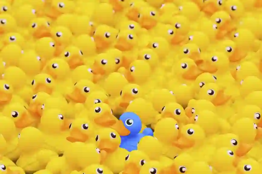看到这张照片时,首先映入眼帘的是什么?相信大多数人的眼神会被蓝色小鸭子吸引。对人类而言,显然这只蓝色小鸭子在图片中异常突出。不知何故,人类总是具备发现特定模式的能力,并会将注意力转移到那些与众不同的特征之上。