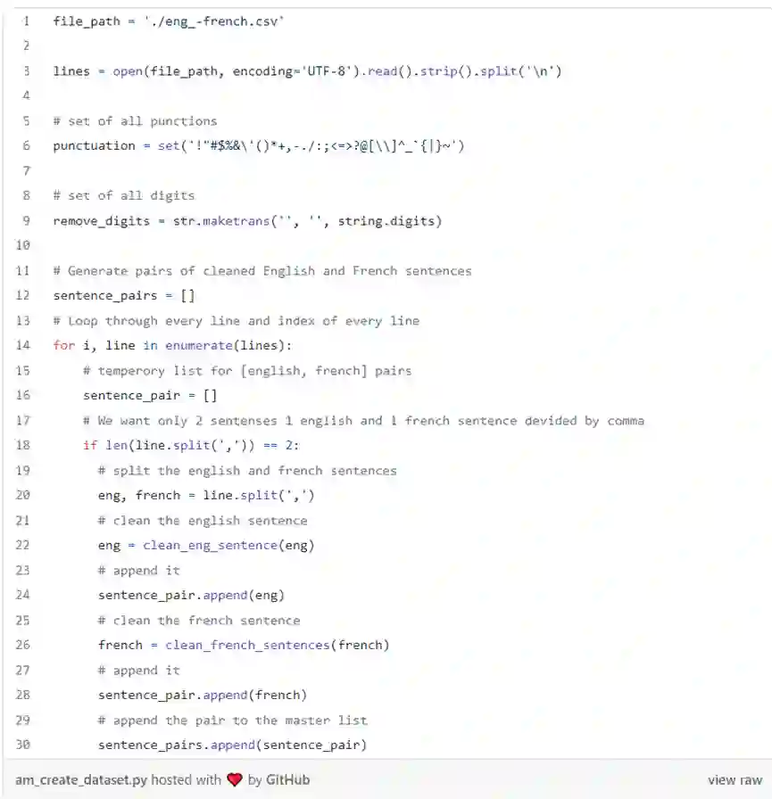 文中的代码对“注意力机制文章⁹”中的第三方实现代码进行了修改和优化。与“注意力机制文章⁹”不同,这里利用注意力机制来设计一个系统,将给定的英语句子翻译成法语。