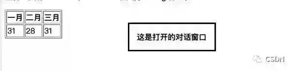 <th>一月 <dialog open>这是打开的对话窗口</dialog></th>