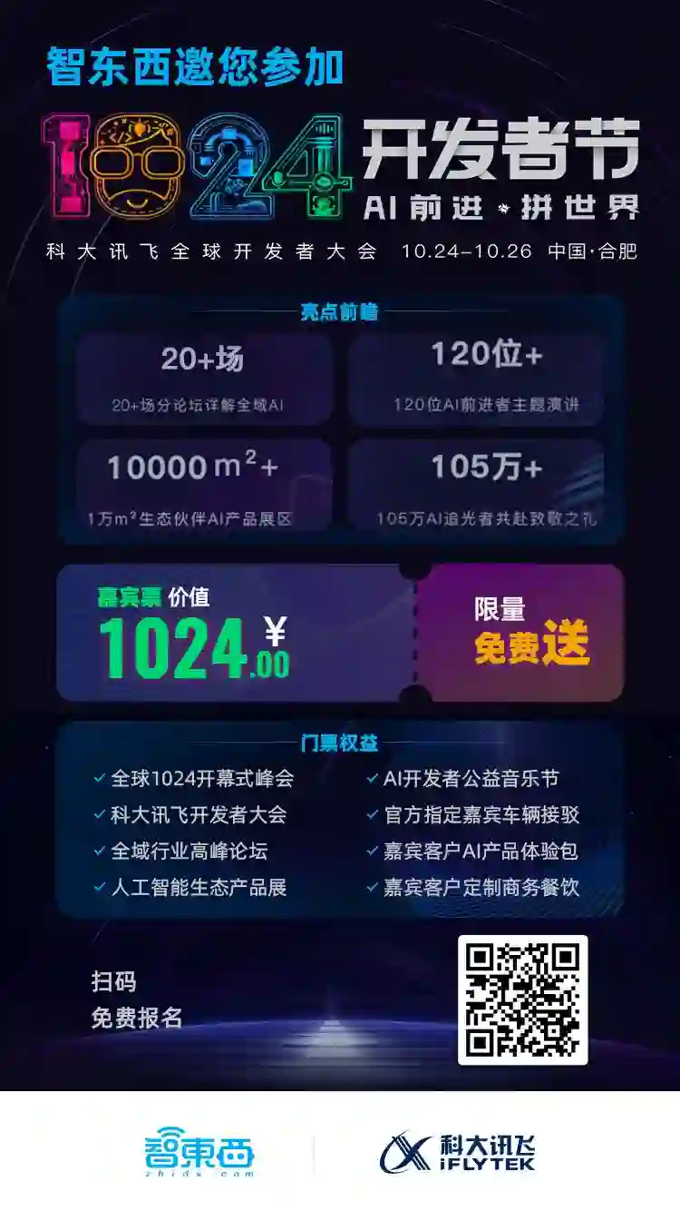 限量免费送价值1024元嘉宾票,智东西粉丝专享,扫码报名吧!👇