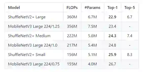 以 Google AI 团队开发的网络优化结构 MobileNet 为对比(根据Google AI团队的公开技术报告),ShuffleNet V2 在实际运行速度上经常比 MobileNet V2 快 30 - 50%。