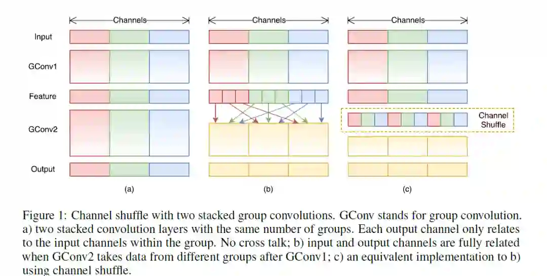 在基于ARM的移动设备上,ShuffleNet在保证相似精度的情况下实现比经典的AlexNet快二十倍的速度。