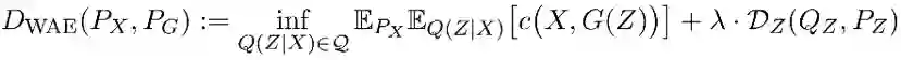 根据定理 1,解这个问题是在 encoder Q(Z|X) 上做优化,而不是在 X 和 Y 的联合分布上。在实践中,为了找到数值解,WAE 放宽了对 Qz 的约束,训练目标为: