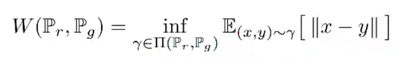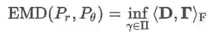 在这个联合分布下可以求得所有 x 与 y 距离的期望,存在某个联合分布使这个期望最小,这个期望的下确界(infimum)就是 Pr、Pg 的 Wasserstein 距离。