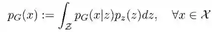WAE 这个工作则是建立了 Pg 的隐变量模型,首先从隐空间一个固定的分布 Pz 中得到 Z 的采样,然后 Z 映射到一个图像 X,则 X 的分布可表示为: