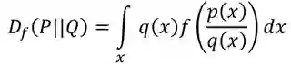 其中 f(x) 可以是任何满足 1. f is convex 2. f(1) = 0 的函数。可以证明,当 P 和 Q 完全相同,也就是说取任意的 x,都有 p(x) = q(x),Df(P||Q)=0。当 P 和 Q 有差异时,由于 f 是 convex 的: