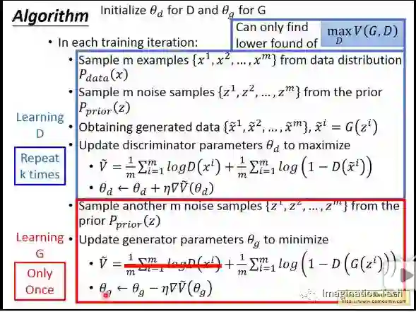 仔细观察上式,最大化V的过程,就是将Pd产生的样本作为正样本,Pg产生的样本作为负样本,训练一个分类器D的过程。