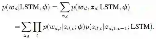 则是给定了话题之后生成单词的概率。这个公式就展现出了对基于 LSTM 和 LDA 的语言模型的简单改动。