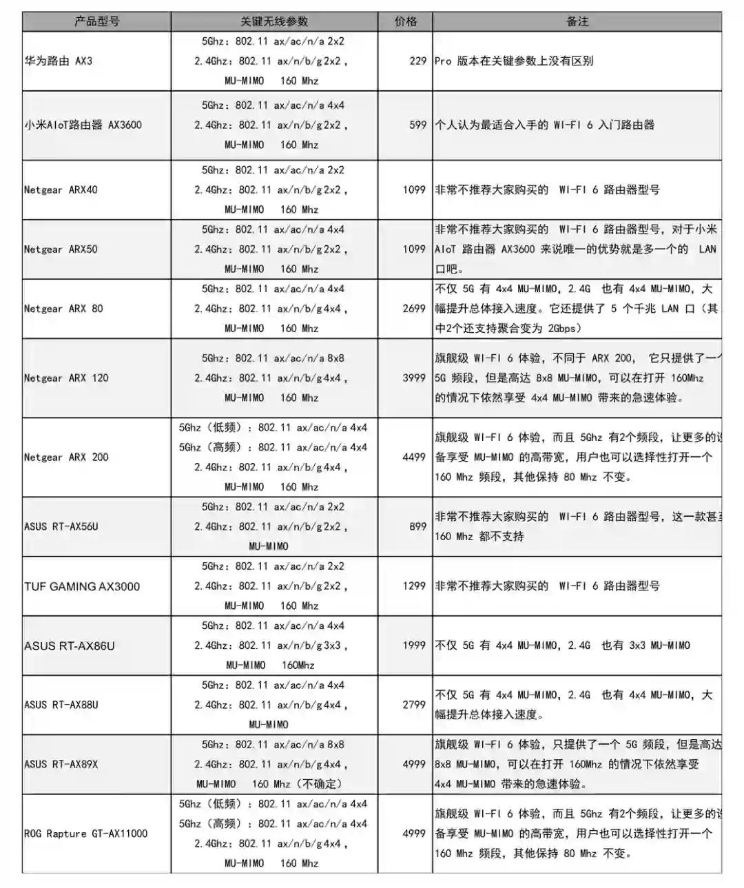 目前支持 Wi-Fi 6 的设备和相关如下图(下图仅仅只是举例):