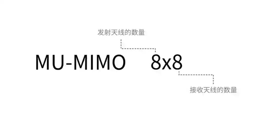 MU-MIMO 分为 MU 和 MIMO 两部分,MIMO 代表了多输入和多输出,(对于无线路由器/接入点来说)就是让多条天线在一个无线电频率上向同一个设备同时发送和接收数据的技术,打个形象的比喻就是:多辆卡车同时在一条路上向同一个用户发货。MIMO 能提升的性能和数据流(也被称为空间流)有关,一般用类似 8x8 这样字段来表示,x 前面表示发射天线数量,x 后面则表示接受天线的数量,能同时工作的天线数量越多自然更快。Wi-Fi 6 第一代无线路由器/接入点最大支持 8x8 规模的空间流,而 Wi-Fi 5 只支持 4x4 个,而随着 Wi-Fi 6 的发展空间流的规模还会越来越大,速度还会越来越快。
