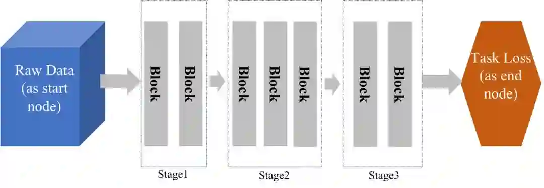 图2. 基于Stage和building block的神经网络架构设计。其中,使用多少Stages以及每个Stage使用多少个building blocks都属于模型设计超参。