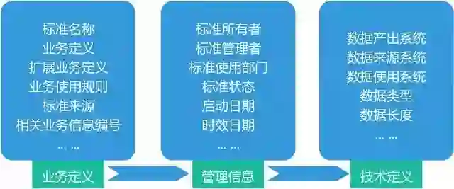 管理信息。管理信息是指明确标准的所有者、管理人员、使用部门等内容,从而使数据标准的管理和维护工作有明确的责任主体,以保障数据标准能够持续的进行更新和改进。
