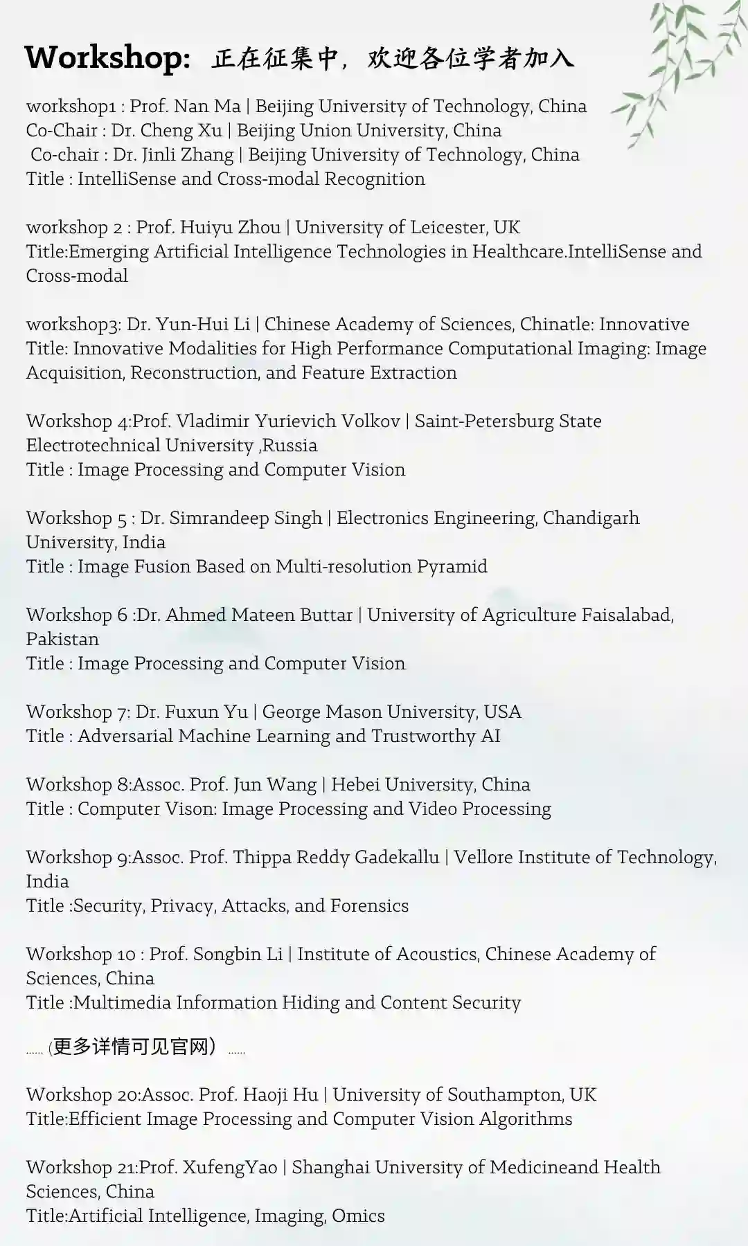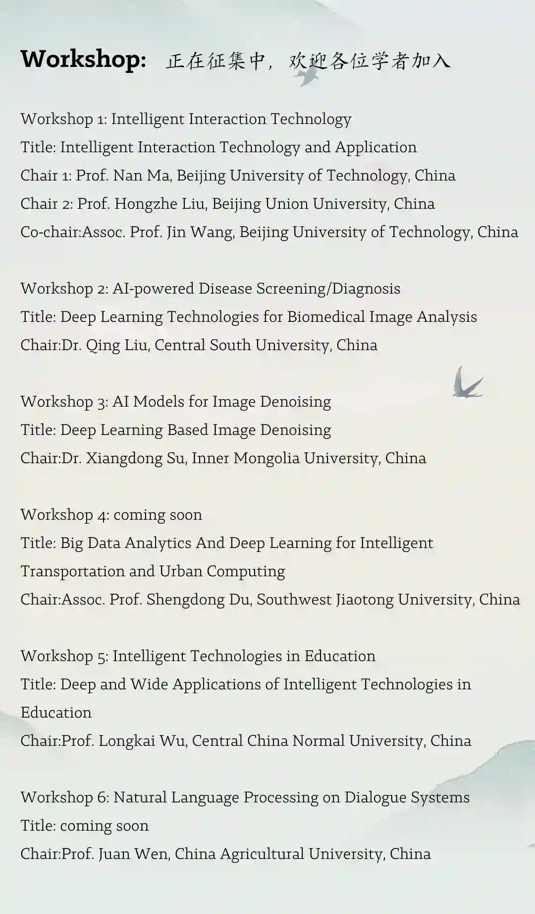支持各位学者以组建workshop形式投稿 ,即小型研讨会。针对每个workshop,组委会提供一定的学术支持。