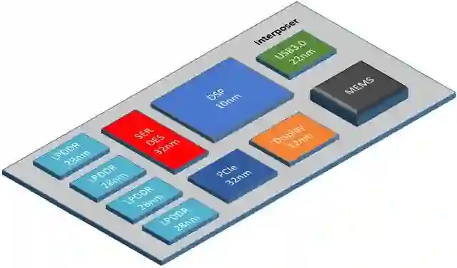此外,芯粒(Chiplet)也是近年来的热门词汇。芯粒是一颗商品化的、具有功能(如 USB、存储器)特征的裸芯片(die),从系统端出发,首先将复杂功能进行分解,然后开发出多种具有单一特定功能,可相互进行模块化组装的裸芯片,如实现数据存储、计算、信号处理、数据流管理等功能,并最终以此为基础,建立一个芯粒的芯片网络。
