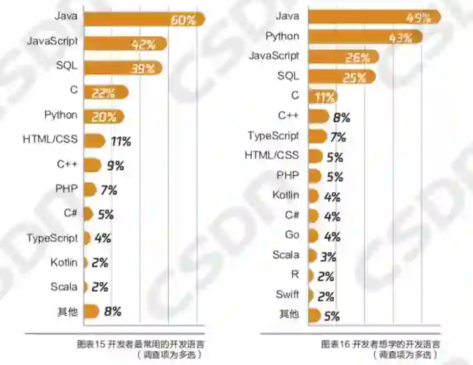 开发者最想学的三种语言是Java、Python、 Javascript,而使用最多排在第三的SQL,却在最想学排行榜中位列第四,被炒得火热的Python替代。