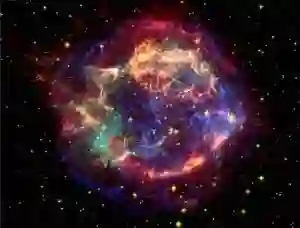 根据目前认知,无论何种途径形成的超新星在爆发时都会猛烈地抛射大量物质,携带巨大动能,典型值为1051尔格。这些抛射物的初始速度在几千上万千米每秒,远大于星际介质(ISM)中的声速。这些抛射物的超声速膨胀会形成冲击波(激波),和周围星际物质作用后形成绚丽多彩的丝状气体云和气壳结构,称为超新星遗迹,参见图3。这一过程和我们日常生活的礼花或者焰火非常类似,爆炸后会产生奇幻的色彩。因此,把超新星遗迹比喻为宇宙中的焰火再贴切不过了。