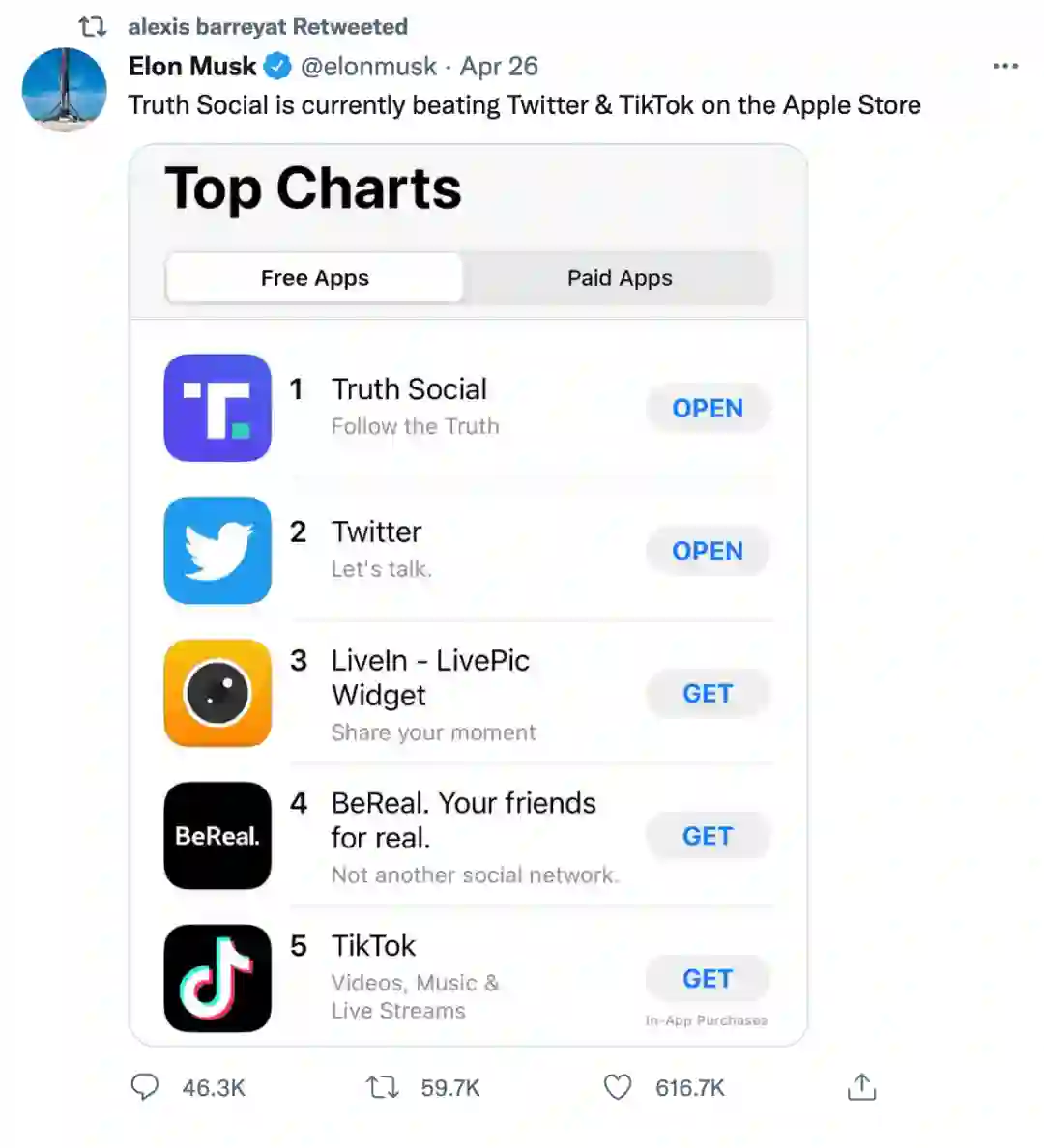 在这种浪潮下,一款被年轻人钟爱的新社交App——BeReal在过去一年爆红,霸屏iOS和安卓下载榜单,甚至被马斯克发推关注,被扎克伯格琢磨“抄袭”。