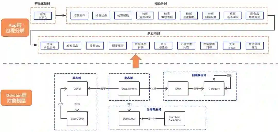 @Phasepublic class OnSaleProcessPhase {private PublishOfferStep publishOfferStep;private BackOfferBindStep backOfferBindStep;//省略其它steppublic void process(OnSaleContext onSaleContext){SupplierItem supplierItem = onSaleContext.getSupplierItem();// 生成OfferGroupNogenerateOfferGroupNo(supplierItem);// 发布商品publishOffer(supplierItem);// 前后端库存绑定 backoffer域bindBackOfferStock(supplierItem);// 同步库存路由 backoffer域syncStockRoute(supplierItem);// 设置虚拟商品拓展字段setVirtualProductExtension(supplierItem);// 发货保障打标 offer域markSendProtection(supplierItem);// 记录变更内容ChangeDetailrecordChangeDetail(supplierItem);// 同步供货价到BackOffersyncSupplyPriceToBackOffer(supplierItem);// 如果是组合商品打标,写扩展信息setCombineProductExtension(supplierItem);// 去售罄标removeSellOutTag(offerId);// 发送领域事件fireDomainEvent(supplierItem);// 关闭关联的待办事项closeIssues(supplierItem);}}