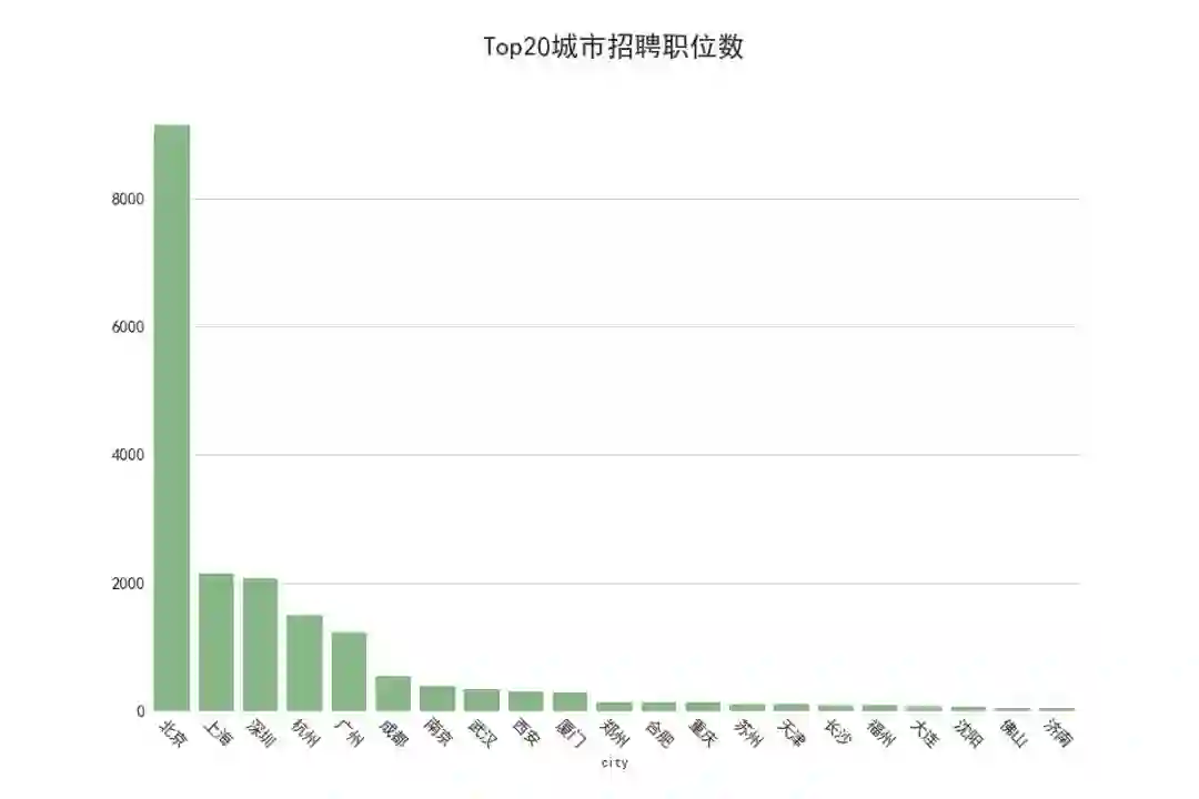 从招聘岗位数来看,北上广深杭的职位总数占总体的 83% ,二线城市的招聘需求量,同比上月再次下降 3 个百分点。