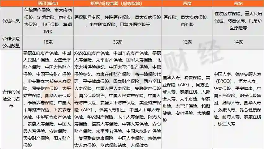 (一) BATJ中,蚂蚁保险的合作保险公司最多