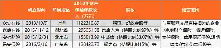 数据来源:众安在线、泰康在线、安心财险、易安财险官网