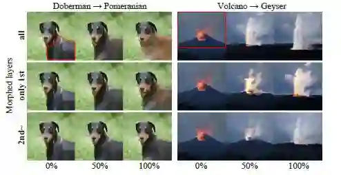 为了通过分类精度和人类感知测试来定量评估方法在真实图像转换方面的表现,将 sCBN 方法应用于 ImageNet 数据集中的图像,并进行 (1) cat→big cat,(2) cat→dog 以及 (3) dog→dog 的变换。