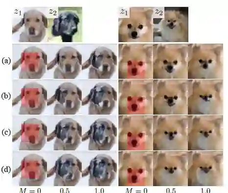 特征混合能够在中间特征空间直接融合多张图像,还能将复杂特征进行局部混合;图 1b 中,通过特征混合将一只动物的姿态变为模型所定义的姿势。