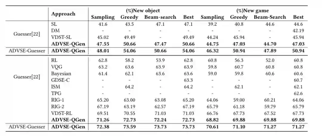 [1] FlorianStrub,HarmdeVries,JérémieMary,BilalPiot,AaronC.Courville,and Olivier Pietquin. 2017. End-to-end optimization of goal-driven and visually grounded dialogue systems. In Joint Conference on Artificial Intelligence.[2] Pushkar Shukla, Carlos Elmadjian, Richika Sharan, Vivek Kulkarni, Matthew Turk, and William Yang Wang. 2019. What Should I Ask? Using Conversationally Informative Rewards for Goal-oriented Visual Dialog.. In Proceedings of the 57th Annual Meeting of the Association for Computational Linguistics. Association for ComputationalLinguistics,Florence,Italy,6442–6451. https://doi.org/10.18653/v1/P19-1646[3] JunjieZhang,QiWu,ChunhuaShen, JianZhang, JianfengLu, andAntonvanden Hengel. 2018. Goal-Oriented Visual Question Generation via Intermediate Re- wards. In Proceedings of the European Conference on Computer Vision.[4] Ehsan Abbasnejad, Qi Wu, Iman Abbasnejad, Javen Shi, and Anton van den Hengel. 2018. An Active Information Seeking Model for Goal-oriented Vision- and-Language Tasks. CoRR abs/1812.06398 (2018). arXiv:1812.06398 http://arxiv.org/abs/1812.06398.[5] EhsanAbbasnejad, QiWu,JavenShi, andAntonvandenHengel. 2018. What’sto Know? Uncertainty as a Guide to Asking Goal-Oriented Questions. In Proceedings of the IEEE Conference on Computer Vision and Pattern Recognition. 4150–4159.[6] Chaorui Deng, Qi Wu, Qingyao Wu, Fuyuan Hu, Fan Lyu, and Mingkui Tan. 2018. Visual Grounding via Accumulated Attention. In Proceedings of the IEEE Conference on Computer Vision and Pattern Recognition. 7746–7755.[7] Tianhao Yang, Zheng-Jun Zha, and Hanwang Zhang. 2019. Making History Matter: History-Advantage Sequence Training for Visual Dialog. In Proceedings of the IEEE International Conference on Computer Vision. 2561–2569.