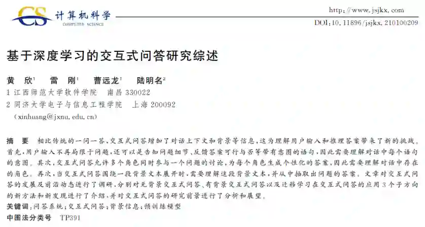 后台回复“DLIQA” 就可以获取《基于深度学习的交互式问答研究综述》专知下载链接