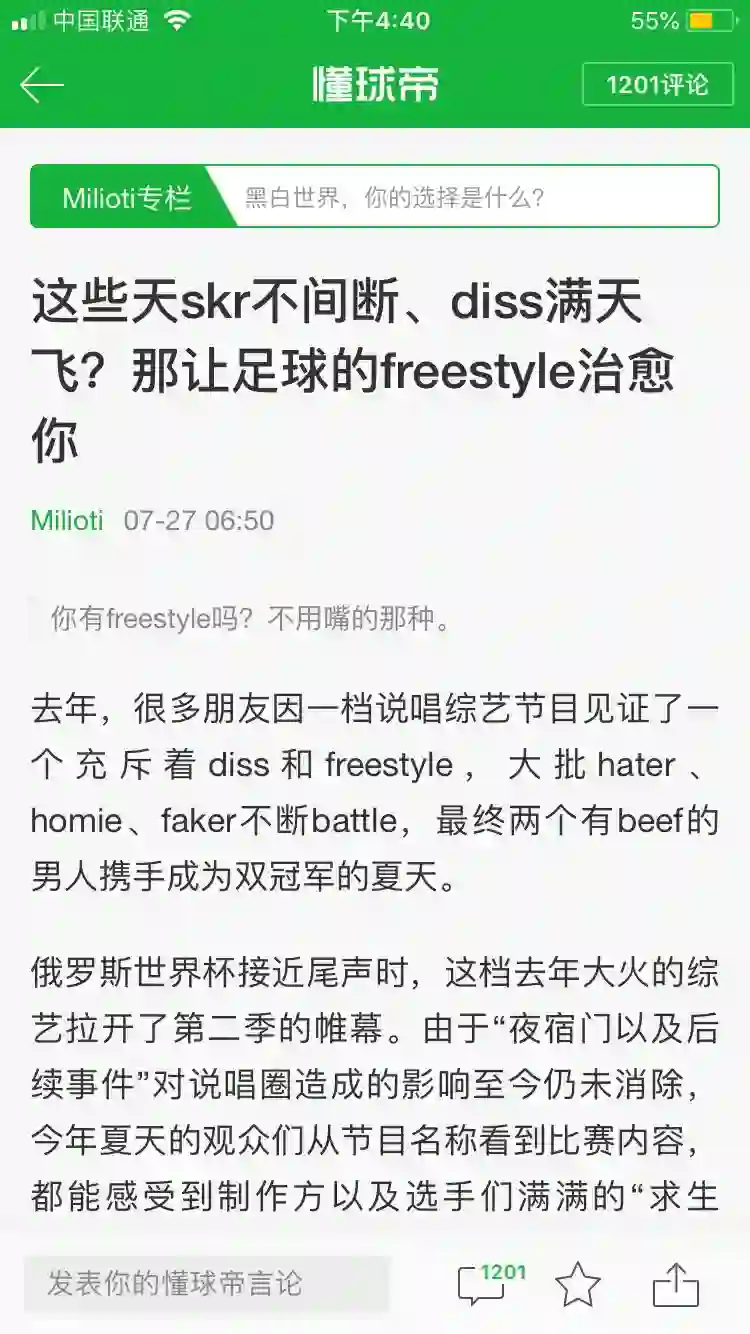 当然,早已有勤奋的自媒体从业者靠着吴亦凡和虎扑的事,拿到了十万加。但如果你是一个相对垂直的自媒体怎么办呢?蹭热词也是一种方式。小编今早收到了来自懂球帝的一个推送《通常文章都是在讲足球领域的freestyle是指什么?》汇总了足球场上的freestyle,内容非常有质量,流量也远超过一般的帖子。