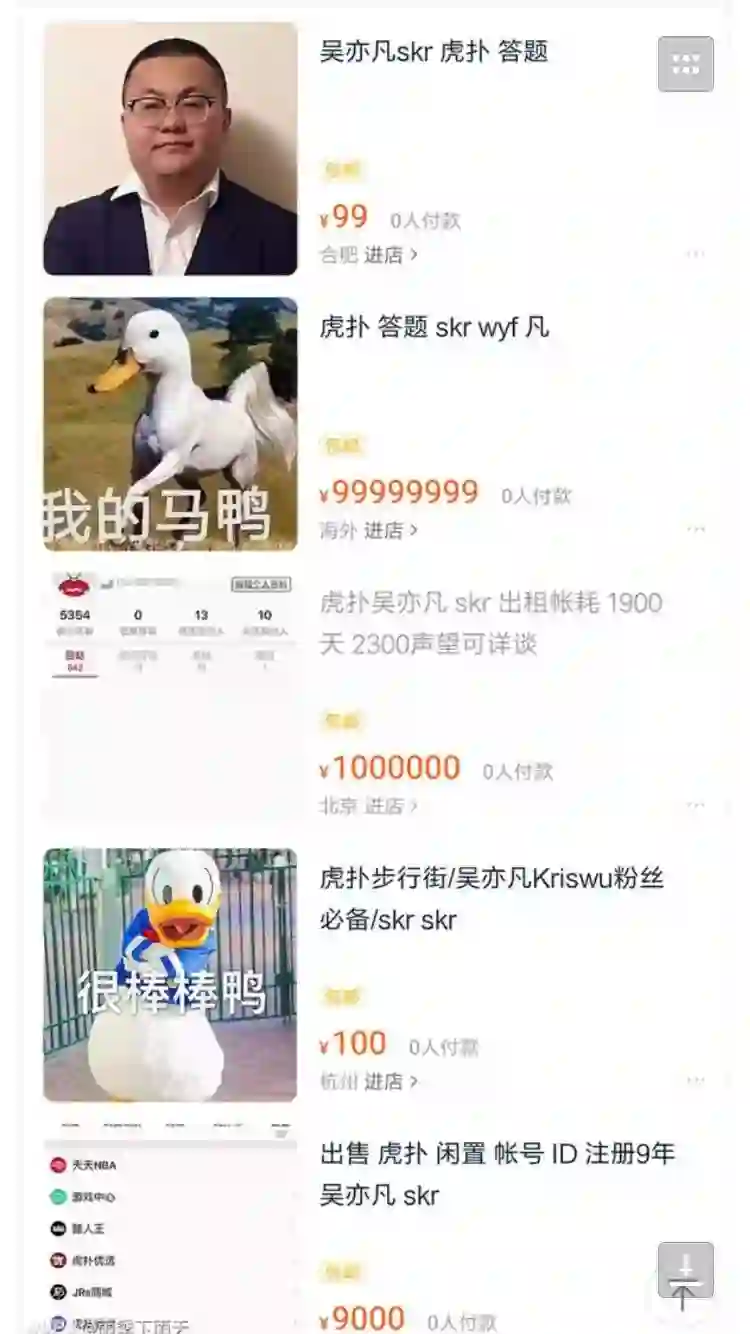 在发现吴亦凡粉丝因为答不上题而无法进入社区之后,虎扑用户迅速发现“商机”,在淘宝上卖起了题。