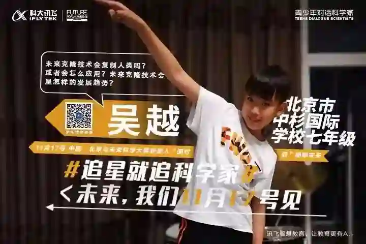 这样童真又充满技术感的对话,发生在 11 月 17 日的“青少年对话 2019 未来科学大奖获奖人”活动中,活动由科大讯飞在北京举办,200 名优秀青少年与科大讯飞高级副总裁杜兰、2018 未来科学大奖获奖人马大为,一起共话科学和未来。