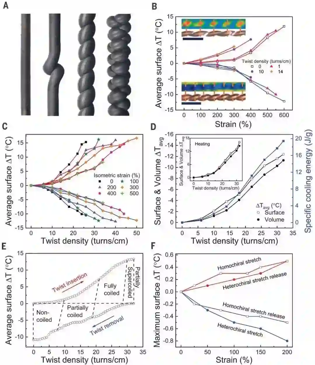 今天,10月11日在线出版的《科学》(Science)杂志刊文,报道了南开大学与美国德克萨斯州立大学达拉斯分校的一支国际联合研究团队研获的一种柔性制冷新策略——“扭热制冷”。他们发现,改变纤维内部的捻度可以实现降温。由于制冷效率更高、体积更小且适用于天然橡胶、钓鱼线以及镍钛合金等多种普通材料,基于这种方法制成的“扭热冰箱”也变得前景可期。