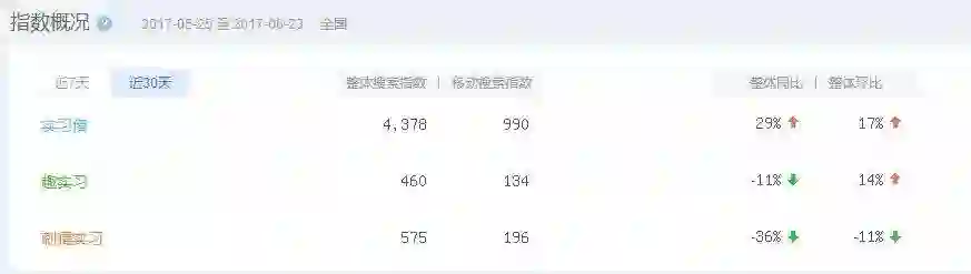 根据近一个月的百度指数来看,实习僧占据绝对优势。