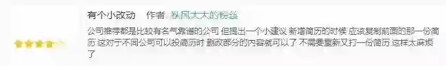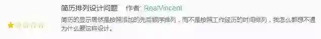 但也有用户对简历部分持异议,和上文说的一样,简历不能复制以及实习经历的时间排序问题确实有待优化。优化简历复制功能可以促进用户使用两个不同的简历(毕竟即使是再不同的两个工作岗位,用户也无需大改自己的简历,只需要局部修改即可)。