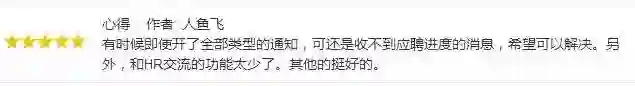 有用户反映了其他问题——投递简历后进度更新并不会收到提醒,以及与HR的交流受限。笔者在使用过程中也发现,简历投递后,即使简历被查看,或者其他消息,均无法接收到通知。