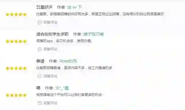 从评价内容来看,大部分用户对实习僧持正面评价,认为实习僧比综合类的智联招聘、前程无忧更好,实习机会更多。同时,我们可以通过这些评论窥探到用户的诉求——正规企业,实习机会多,工作靠谱。实习僧确实做到了这些。