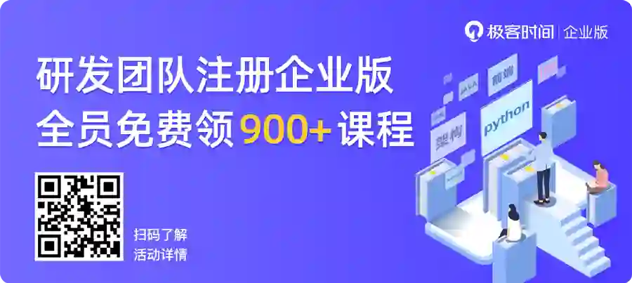心动不如行动!如果你是一个团队Leader,不妨带领队员先试学一下极客时间的课程;如果你是一名工程师,可以把这个好消息告诉你的团队,一起领免费课程来学习。