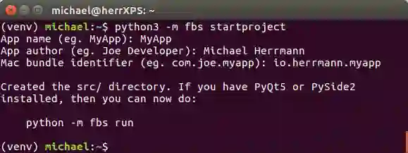 我们将使用一个叫做fbs的新库,它允许你为PyQt应用程序创建独立的可执行文件。要安装它,请输入以下命令: