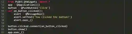 Qt使用一种称为信号的机制,让你对诸如用户单击按钮之类的事件作出反应。下面的例子说明了这一点。它包含一个按钮,被点击时,它会显示一个消息框: