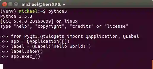 是时候编写我们的第一个GUI应用了!在虚拟环境仍然活跃的情况下,启动Python。我们将执行以下命令: