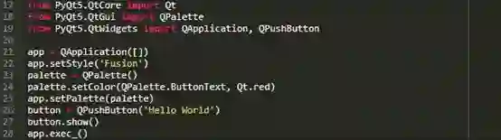如果你喜欢一种样式,但想要改变它的颜色(例如 对一个黑暗主题),您可以使用QPalette 和app.setPalette(...)。例如: