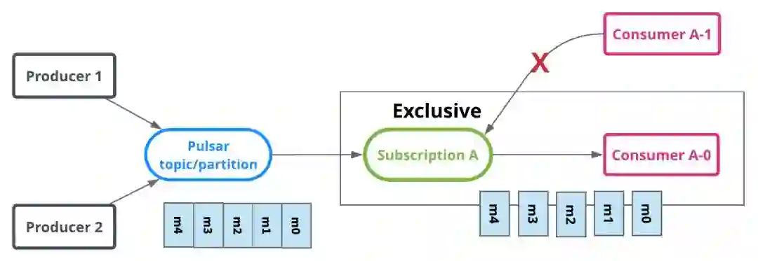 独占和故障切换订阅,仅允许一个消费者来使用和消费每个对主题的订阅。这两种模式都按主题分区顺序使用消息。它们最适用于需要严格消息顺序的流(Stream)用例。
