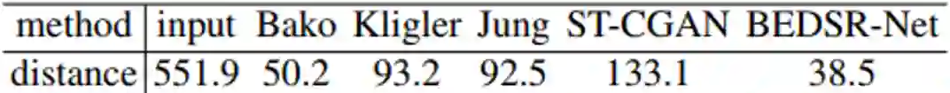定量和定性比较都证明了本文方法的有效性以及优越性,超过了目前SOTA的方法,通过将BE-net整合到ST-CGAN上也很好的证明BE-net的有效性。