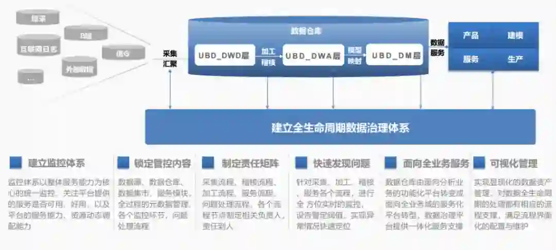 首先是从数据采集加工流程中梳理出数据治理体系最需关注的各环节建设内容和目标: