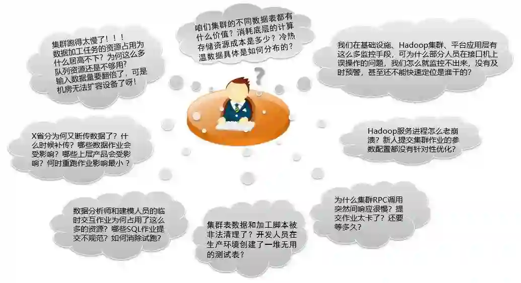 A:好问题!恭喜你!你快要触摸到数据集群治理问题的核心了。我们不妨再捋一下数据集群治理的背景,主要是遇到的历史部分集群无序建设的种种问题: