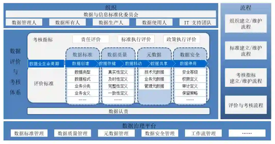 数据治理是一个系统工程,通常是按照类似下面的框架做: