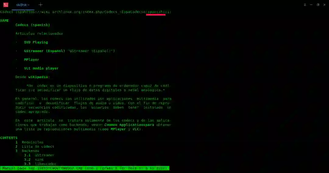 awman 默认打开的是英文的 Arch Wiki 页面。如果你想用其他的语言查看搜索结果,例如西班牙语,只需要像这样做: